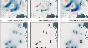 In the North Sea, large-scale offshore wind development could reduce current velocities by up to 20% and increase sea surface temperatures, according to ocean physics simulations of the North Sea.