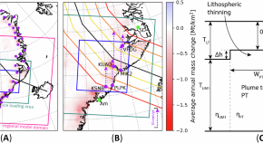 Unusually rapid uplift of Southeast Greenland is explained as a viscous response to recent deglaciation occurring above mantle weakened by the Iceland plume, according to 3D modelling with a hot plume track that crosses Greenland’s southeast coast.