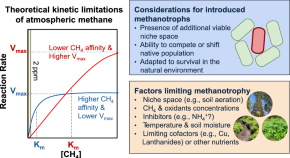 The microbial process of methane oxidation is slow due to energy limitations in environments exposed to low methane concentrations, but understanding limiting factors may help to enhance rates of atmospheric methane removal, according to a review of ecological and evolutionary aspects.