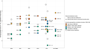 Comparing historical carbon dioxide emissions with past projections shows that historical trends have fluctuated around the middle of the projected ranges. Because temporal and geographical variability is high, it is important to use a wide range of emission scenarios.