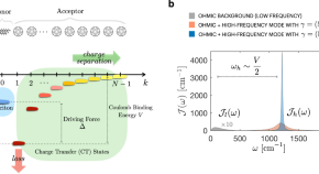 The dynamics of charge separation, where the underlying mechanisms are a complex interplay of many contributing factors, govern the properties and performance of solar cells. Here, the authors investigate the role of vibrational motion in the charge dynamics of donor-acceptor networks using a non-perturbative simulation tool.