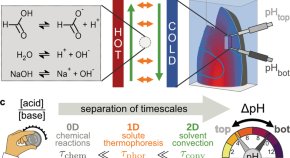 Cells use pH gradients to drive the synthesis of adenosine triphosphate (ATP), but the physicochemical mechanisms that can produce pH gradients in non-equilibrium settings are poorly understood. The authors here theoretically and experimentally investigate the formation of a pH gradient in an acid-base reaction system, driven by a heat flow, providing insights on how crude non-equilibrium systems can feed chemical gradients exploitable by life.