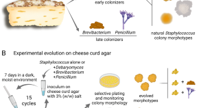 Experimental evolution in a laboratory helps researchers to understand the genetic and phenotypic background of adaptation under a particular condition. Simultaneously, the simplified environment that represents certain aspects of a complex natural niche permits the dissection of relevant parameters behind the selection, including temperature, oxygen availability, nutrients, and biotic factors. The presence of other microorganisms or a host has a major influence on microbial evolution that often differs from the adaptation paths observed in response to abiotic conditions. In the current issue of the ISME Journal, Cosetta and colleagues reveal how cross-kingdom interaction representing the cheese microbiome succession promotes distinct evolution of the food- and animal-associated bacterium, Staphylococcus xylosus. The authors also identified a global regulator-dependent adaption that leads to evolved derivatives exhibiting reduced pigment production and colony morphologies in addition to altered differentiation phenotypes that potentially contribute to increased fitness.