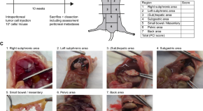 The authors developed an in vivo model to assess patterns of peritoneal dissemination of colorectal cancer cell lines that recapitulates the high heterogeneity observed between patients. Great variation in the extent of peritoneal outgrowth, localization and clonal dynamics between cell lines was observed and a putative association with KRAS pathway activation was identified.
