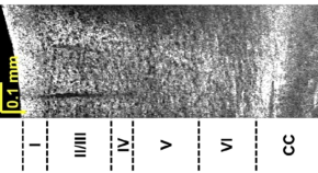 An OCM system that employs a 1700 nm broadband laser source enables cellular level deep brain imaging, providing cytoarchitectural and myeloarchitectural information across cortical depth, without requiring tissue slicing. CC – corpus callosum.