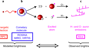 In situ measurements from the Rosetta spacecraft reveal the presence of atomic emissions close to comet 67P’s nucleus. Such emissions are due to dissociative excitation of molecules by the interaction with the solar wind, identifying them as a form of aurora.