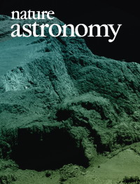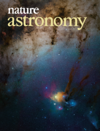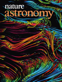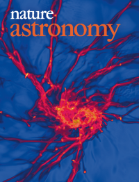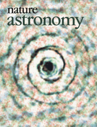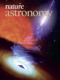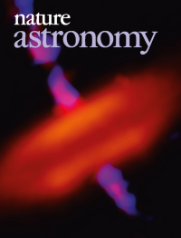 Optical jet lagAn artistʼs impression of a black hole accreting matter from a companion star (red) launches a jet of hot plasma (purple), funnelled by swirling magnetic fields. Measurements of a lag between optical and X-ray emission reveal the characteristic elevation where the jet becomes optically thin (white), giving insight into the physics of plasma acceleration.
