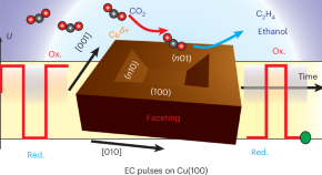Anodic pulsing during electrocatalytic CO2 reduction has been shown to enhance activity and selectivity towards hydrocarbons and alcohols on copper yet the nature of the active sites remains unclear. Here, correlated spectro-microscopy in a quasi in situ experimental set-up provides information on the formation of specific facets and oxidation states under reactive conditions.