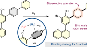 Directing group strategies for selective dearomatization of unactivated aromatic π-systems have remained elusive. Now a homogeneous ruthenium catalyst, aided by a removable directing group, enables the site-selective hydrogenation of less reactive arene moieties in polyaryl compounds.