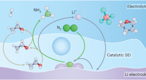 The electrochemical synthesis of ammonia via the lithium-mediated reduction of N2 holds great promise to replace the carbon- and energy-intensive Haber–Bosch process. This Review discusses this approach and examines the critical role of the catalytic solid–electrolyte interphase formed on the electrode.