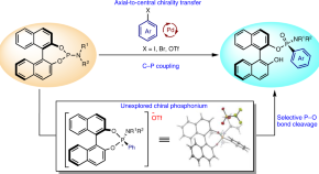 General and efficient methodologies for the construction of homochiral phosphorus stereocentres are sought-after. Now, merging Pd-catalysed cross-coupling with phosphorus arylation of phosphoramidites provides access to a broad array of asymmetric P-compounds by axial-to-central chirality transfer from BINOL.