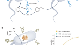 Compatibility issues often limit chemoenzymatic systems. Now it is shown that the proximity between catalytic polymers grafted from the membrane of microorganisms and intracellular heterologous enzymes enhances the reaction rates of a photoenzymatic system, while the coating increases the stability.