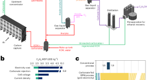 Future industrial processes for the electrolytic production of ethylene from aqueous carbonate feedstocks are not well understood. The authors develop unit operations and full process designs, evaluate the techno-economics at scale, identify key process requirements and barriers, and elucidate the minimum benchmarks needed for the future commercial viability of this technology.