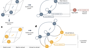 A graph neural network using virtual nodes is proposed to predict the properties of complex materials with variable dimensions or dimensions that depend on the input. The method is used to accurately and quickly predict phonon dispersion relations in complex solids and alloys.