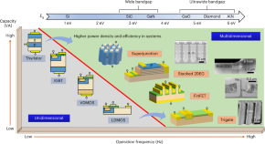 This Review examines the use of multidimensional architectures—such as superjunction, multi-channel and multi-gate technologies—in power electronics devices, exploring the performance limits, scaling and material figure of merits of the different architectures.
