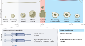 As most studies on the action of insulin in the brain have focused on men, metabolic changes during the menstrual cycle in women remain poorly understood. Using intranasal insulin administration during hyperinsulinaemic–euglycaemic clamps and functional MRI, Hummel et al. show reduced insulin sensitivity during the luteal phase.