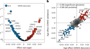 Ageing is associated with proteomic changes in the blood. However, most research on the ageing blood proteome is cross-sectional in nature. Using a longitudinal analysis, we identified 86 ageing-related blood proteins and further revealed a subset of 22 protein biomarkers that, in combination, predict healthy ageing status and age-related cardiometabolic disease risk.