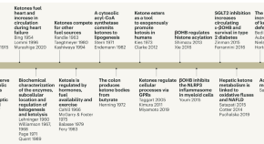 The authors present an overview of the metabolism and pleiotropic actions of ketone bodies, summarizing their endogenous sources, signalling mechanisms and systemic metabolic effects.