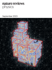 The cover of this issue illustrates the use of machine-learning-based sampling in lattice quantum chromodynamics simulations. See Cranmer et al.