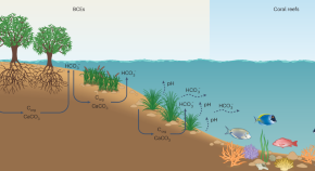 Coral reefs are at a planetary tipping point, widely threatened by ocean acidification. Preserving and promoting coastal ecosystems can align with existing nature-based solutions to bolster blue carbon reservoirs to increase ocean alkalinity and support coral reef restoration.