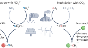 Implementing a chemical C–N coupling step to intercept reactive intermediates in electrocatalytic CO2 or NOxy– reduction reactions is an emerging approach to sustainable electrosynthesis of organonitrogen compounds from cheap and abundant feedstocks.