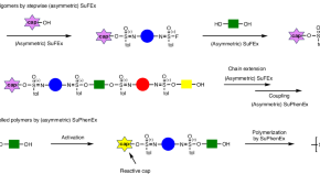 A method for the synthesis of oligosulfonimidates with control of the monomer sequence and the stereogenicity at each of the S(VI) atoms is demonstrated. This approach hinges on the use of robust and enantiospecific sulfur–fluoride and sulfur–phenolate exchange reactions and also allows for the efficient synthesis of chiral sequence-controlled polymers.