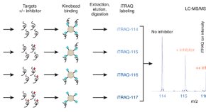 • Cellular targets of kinase inhibitors are identified by mass spectrometric analysis of binding to “kinobeads.”