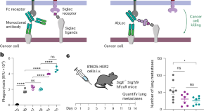 Antibody–lectin chimeras (AbLecs) are an immunotherapy modality designed to bind and block glycans that contribute to immune suppression in cancer. AbLecs enhance antitumor immune responses both in vitro and in vivo, outperforming conventional antibody therapies, including approved cancer drugs.