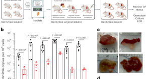 Directly analyzing the role of the gut microbiota during the course of infection with human-specific pathogens is not possible with existing methods. To overcome this problem, we developed a germ-free precision mouse model, which we used to compare the acquisition, replication and pathogenesis of HIV and Epstein–Barr virus.