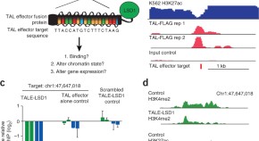 A fusion protein comprising a TALE DNA-targeting domain and the 5-methylcytosine hydroxylase TET1 enables investigation of the function of specific DNA methylation events.