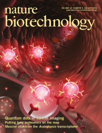Representation of quantum dots, optimized for in vivo delivery, traveling through a blood vessel to bind specifically to receptors on tumor cells (foreground). Such particles promise to significantly advance cancer imaging (see Nie and colleagues, p. 969). Graphic by Ken Eward © Biografx.