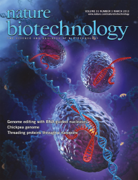 Artistic rendition of DNA cleavage directed by the Cas9 endonuclease complexed with a synthetic single guide RNA. Three groups demonstrate site-specific genome modification in zebrafish embryos (p 227), human cells (p 230) and bacteria (p 233). Credit: Stephen Dixon