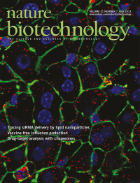Confocal image of liver section from mice injected with lipid nanoparticles carrying siRNA (red). Gilleron et al. (p 638) and Sahay et al. (p 653) dissect molecular mechanisms of siRNA delivery to guide the development of RNAi therapeutics. Credit: Jerome Gilleron, Anja Zeigerer and Marino Zerial.
