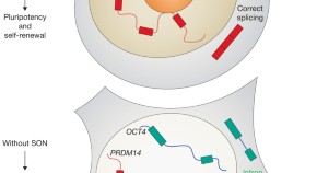 Ng and colleagues show that the spliceosome-associated factor SON is essential for the maintenance of pluripotency and the survival of human embryonic stem cells. Using genome-wide RNA profiling to identify SON-regulated transcripts, they find that it modulates splicing of transcripts of pluripotency regulators such as OCT4, PRDM14, E4F1 and MED24.