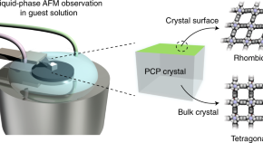 Some porous coordination polymers (PCPs) are known to be flexible and guest-responsive. Now, the guest-induced sharp, reversible structural transformation of the surface of a single-crystalline PCP has been visualized by in situ liquid-phase atomic force microscopy. This local response occurred at a guest concentration that was too low to trigger changes to the bulk crystal.