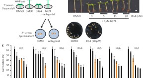 A small-molecule screen examining the inhibition of Arabidopsis hypocotyl growth and seed germination identified an antagonist of strigolactone signaling, soporidine, that interacted with the strigolactone receptor AtHTL and blocked Striga germination.