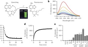 A newly synthesized nitroxide-based probe containing a fluorophore with high quantum yield at relatively long wavelengths can detect endogenously derived lipid-derived radicals and has therapeutic potential in a model of hepatocellular carcinoma.