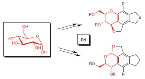 Pd-catalyzed domino reactions have been shown to stitch together chemical groups to form more complex scaffolds. Now these methods are used in a diversity-oriented synthesis approach to make intricate natural product–like structures using simple sugars as starting materials.