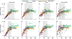 Biodiversity is positively associated with carbon density in highly disturbed tropical forests, but this relationship breaks down in relatively undisturbed areas. Consequently, carbon conservation schemes can fail to protect the most ecologically valuable forests.