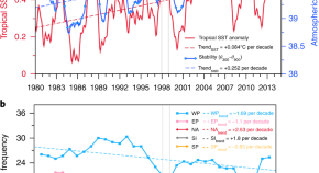 It has been suggested that tropical cyclones have migrated polewards in recent decades. Analysis of observational and reanalysis data suggests that this migration may be linked to an expansion of the Hadley cell and the changes in vertical atmospheric stability.
