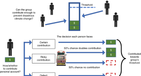 In economic games, players shift to riskier contributions when targets that prevent catastrophic losses cannot be met otherwise, suggesting people are willing to invest in riskier technology when more certain options will not be sufficient to mitigate climate change.