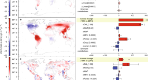 Global net ecosystem production (NEP) from a number of atmospheric inversions and dynamic global vegetation models is analysed to attribute trends to potential drivers. CO2 is found to have a positive effect on NEP that is constrained by climate warming.