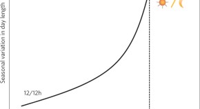 Shifts in the geographic distribution of species caused by climate change could detrimentally affect ecosystems and biodiversity. This Perspective highlights the importance of adaptations to day length in predicting the latitudinal range shifts of different species under global warming.
