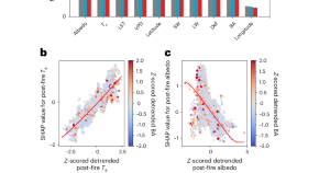 Wildland fires in snow-dominated regions such as the Arctic can have profound effects on snowpack characteristics. Satellite observations reveal a delay in snow cover formation in the Arctic following major wildland fires. Machine learning and causal analyses suggest that this delay is linked to fire-induced reductions in albedo and increases in surface temperature.