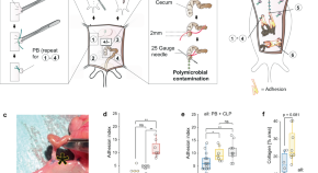 Abdominal surgery can often lead to complications including the formation of peritoneal adhesions and the molecular mechanisms underlying this process are still unknown. Here, the authors suggest that bacterial contamination drives adhesion formation through mesothelial EGFR signalling.