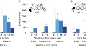 Drug seeking behaviour has habitual neural substrates. Here, Murray et al. show that the basolateral amygdala and central nucleus of the amygdala are necessary to recruit and maintain, respectively, the intrastriatal functional transition that underlies cocaine seeking habits.