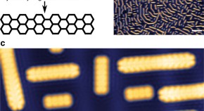 Graphene nanoribbons have potential applications as nanoscale wires, though experimentally studied ribbons display wide bandgaps. Here, the authors synthesise the narrowest armchair graphene nanoribbon predicted to have metallic behaviour and show these ribbons—5 carbon atoms wide—indeed display almost metallic behaviour.
