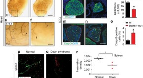 Down syndrome is associated with both central and peripheral nervous system dysfunction. Here, the authors report reduced sympathetic neural innervation in human Down syndrome tissues and a mouse model, and propose a role for RCAN1 trisomy in disrupted NGF receptor trafficking and neurotrophic support.