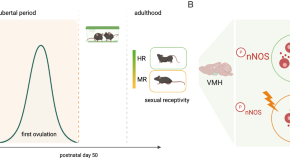 • Developmental stress can detrimentally affect adult female reproductive behavior, influencing sexual receptivity and fertility. Recent work has demonstrated neuronal nitric oxide (NO) synthase (nNOS)-promoted NO release in the ventromedial hypothalamus as a nexus between pre-pubertal stress and adult sexual behavior in mice.
