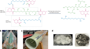 Fibre-reinforced epoxy-amine resins are common materials for wind turbine blades, yet they are challenging to recycle. Now, researchers formulate an alternative resin using biomass-derived polyester with easier-to-break covalent linkages, demonstrating the industrial manufacturability and recyclability of the resin with a nine-metre blade prototype.